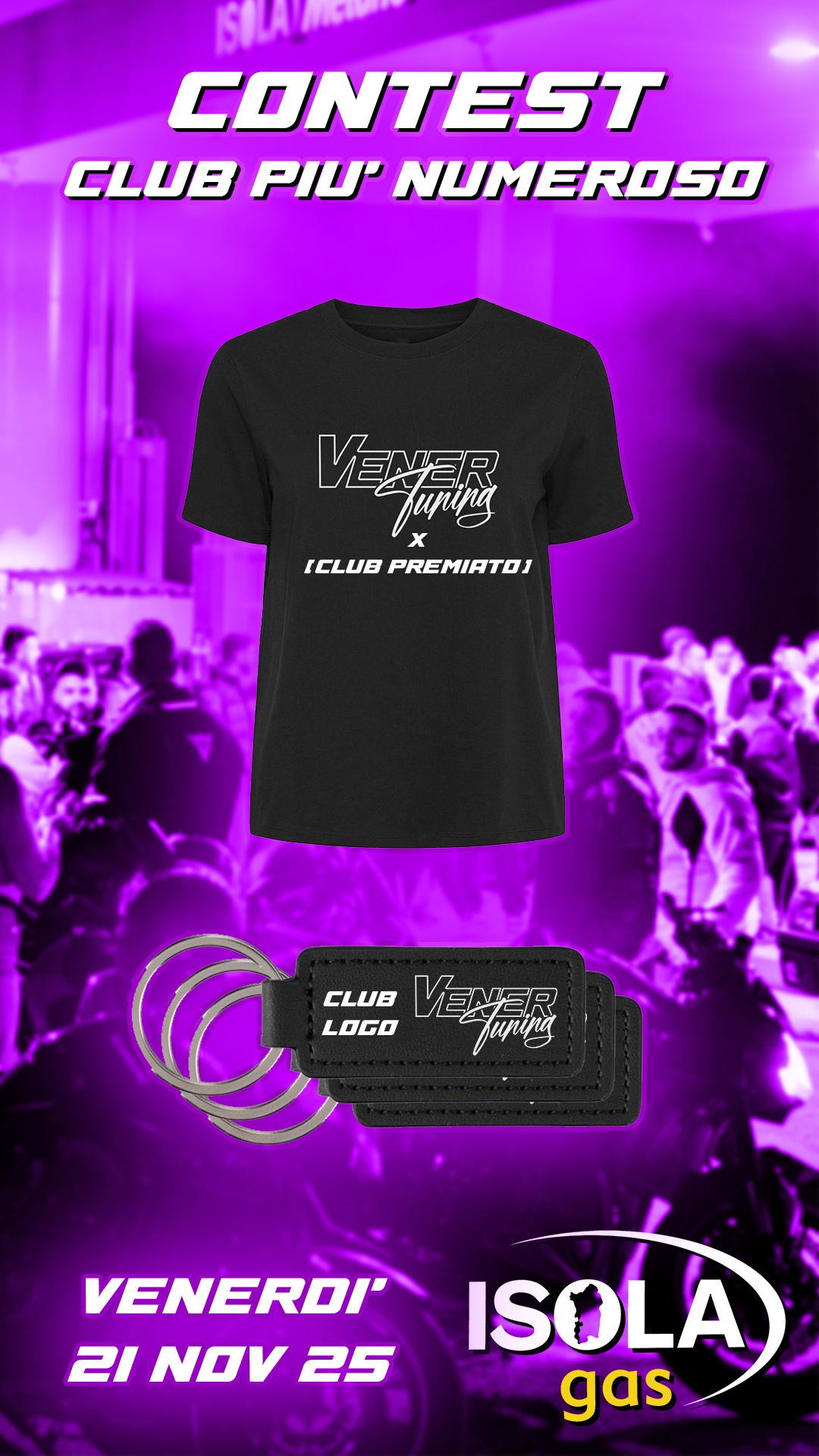 In tale data proponiamo il contest "Club più numeroso", dove verrà premiato il club con il maggior numero di partecipanti presenti durante la serata.